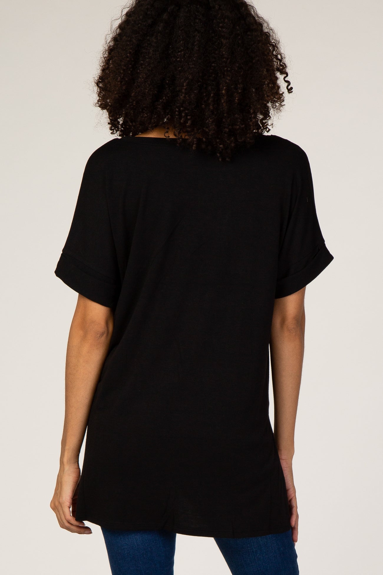 Black V-Neck Cuffed Short Sleeve Maternity Top