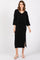 A knit skirt set featuring a cropped top with a v-neckline and dropped shoulder long sleeves and a midi skirt with an elastic waistband.