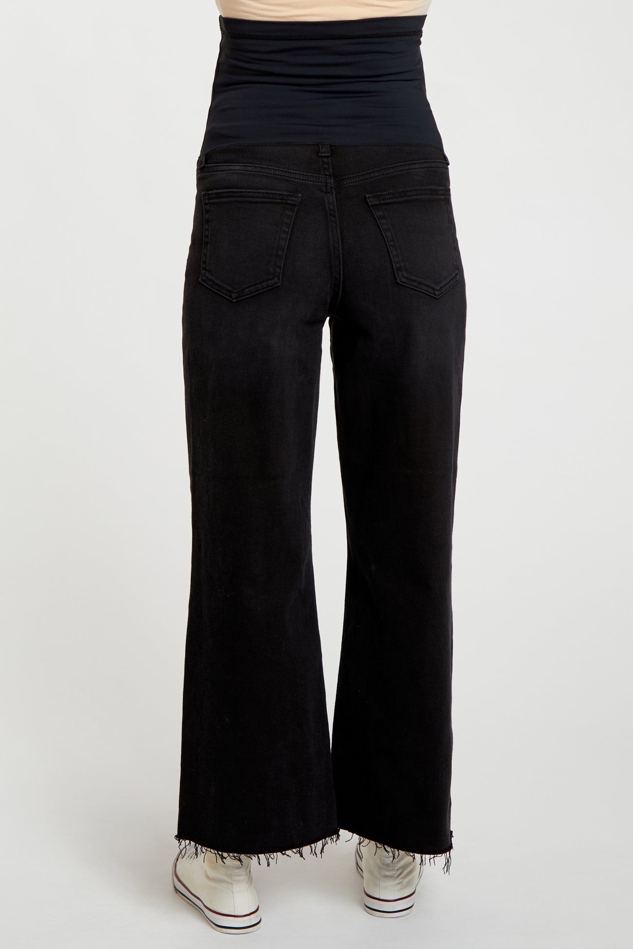 Black Wide Leg Raw Hem Maternity Jeans