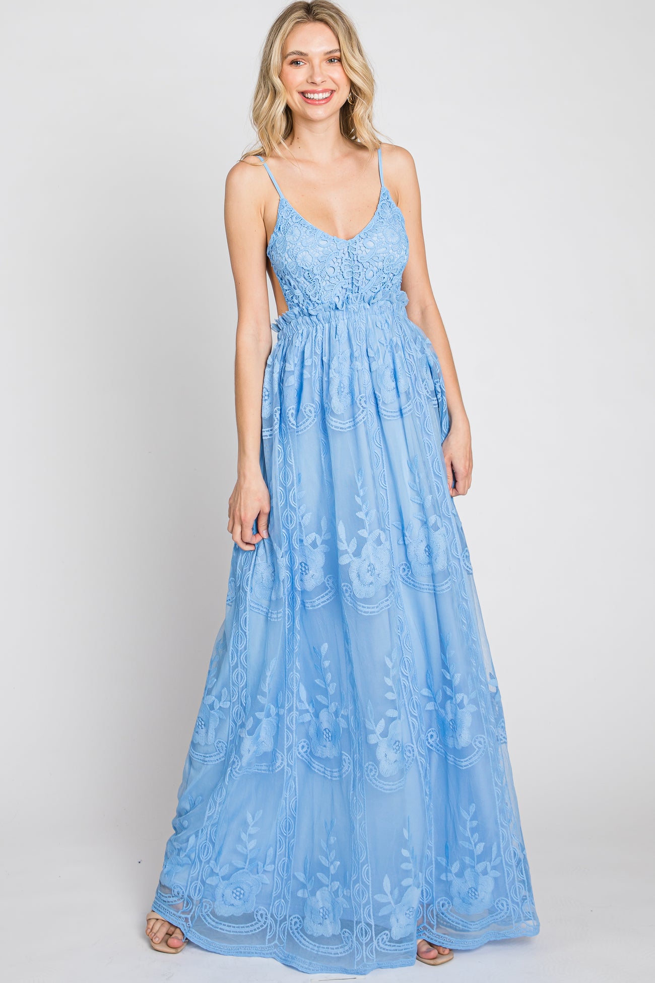 Blue Crochet Lace Open Back Maxi Dress