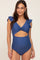 Blue Cutout Flutter One Piece Maternity Swimsuit