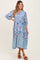Blue Damask Tassel Front Tie 3/4 Sleeve Maternity Midi Dress