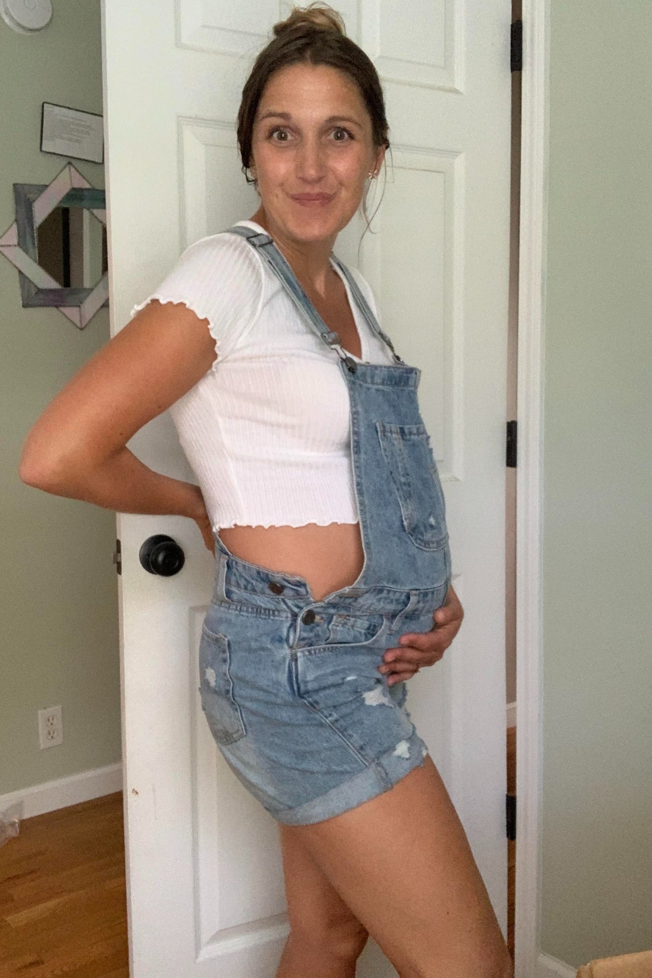Blue Distressed Maternity Denim Short Overalls