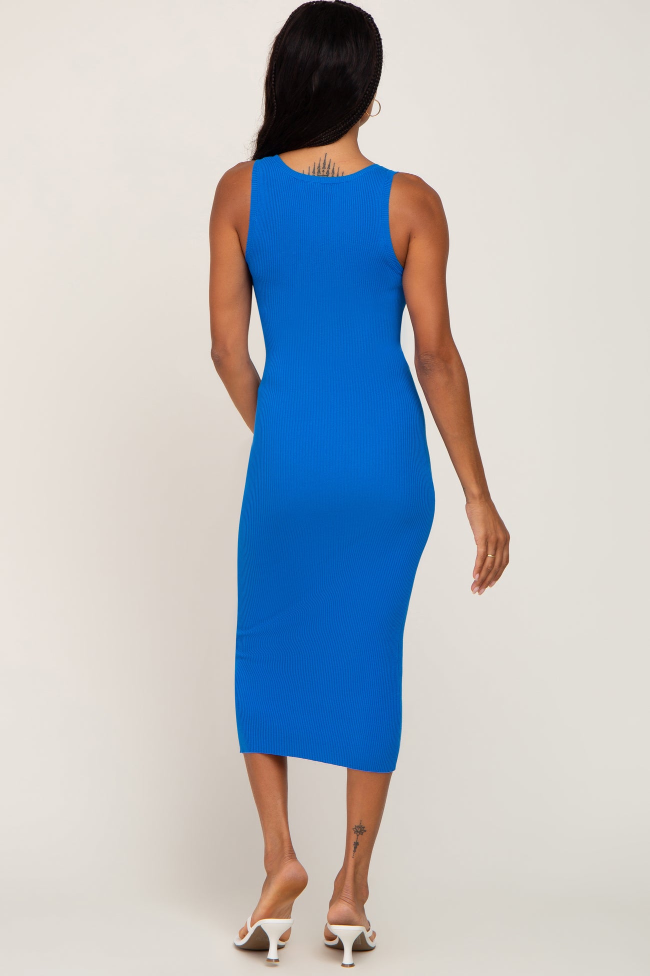 Blue Fitted Knit Midi Dress