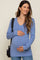 A fitted maternity top featuring long sleeves and a v-neckline.