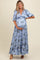 Blue Floral Chiffon Ruffle Accent Maternity Maxi Dress