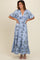 Blue Floral Chiffon Ruffle Accent Maxi Dress