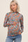 Blue Floral Mesh Long Sleeve Turtle Neck Maternity Top