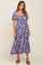 Details A floral print midi dress featuring short puff sleeves, back smocking, a back zipper and a ruffle hem. Content + Care