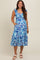 Blue Floral Ruffle Strap Maternity Midi Dress