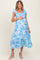 Blue Floral Ruffle Strap Pleated Bodice Maternity Midi Dress