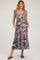 Blue Floral Satin Square Neck Ruffle Strap Maternity Midi Dress