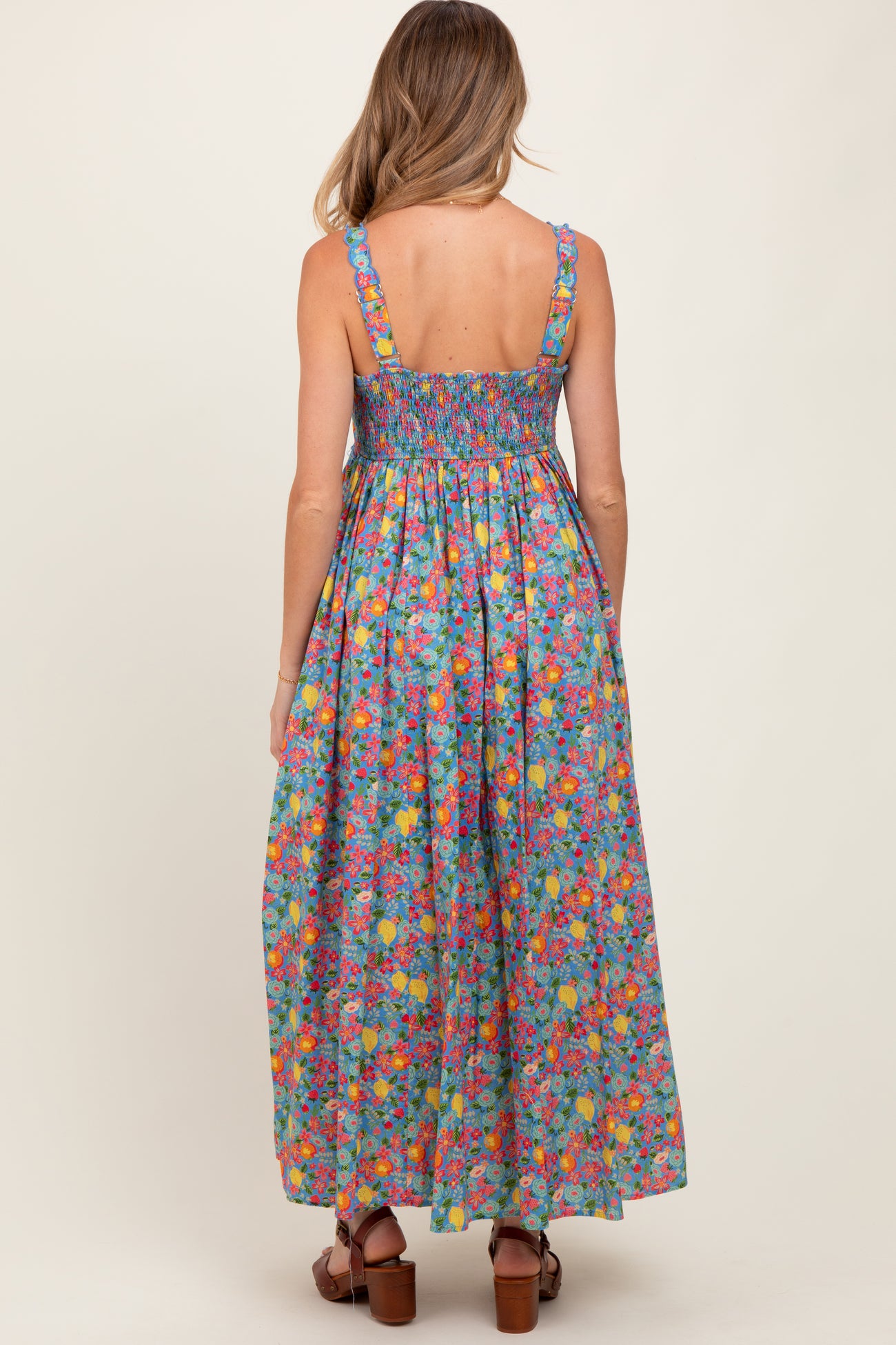 Blue Floral Scallop Detail Sleeveless Maternity Maxi Dress