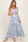 Blue Floral Shoulder Tie Tiered Maternity Maxi Dress