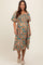 Blue Floral Square Neck Smocked Short Puff Sleeve Maternity Midi Dress