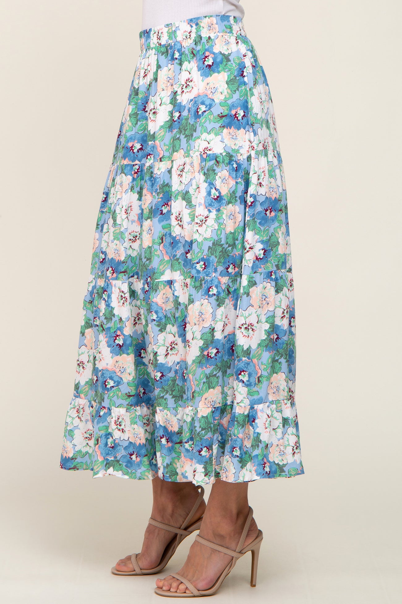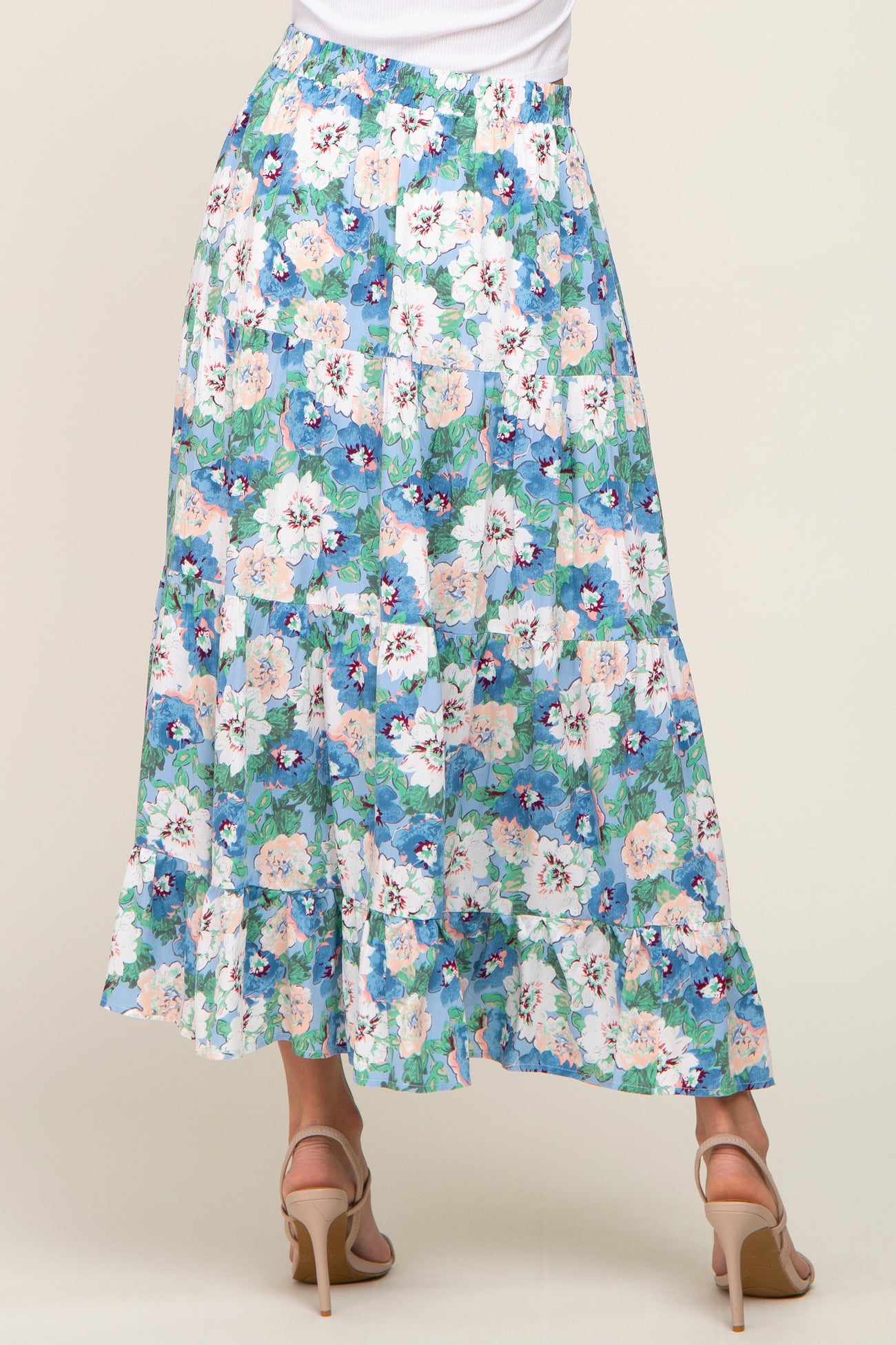 Blue Floral Tiered Maxi Skirt
