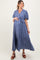 Blue Flutter Sleeve Button Down Maternity Maxi Dress