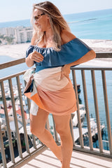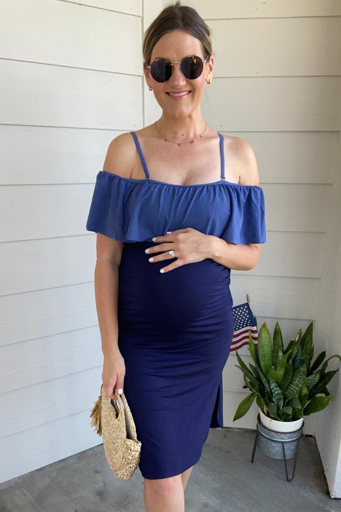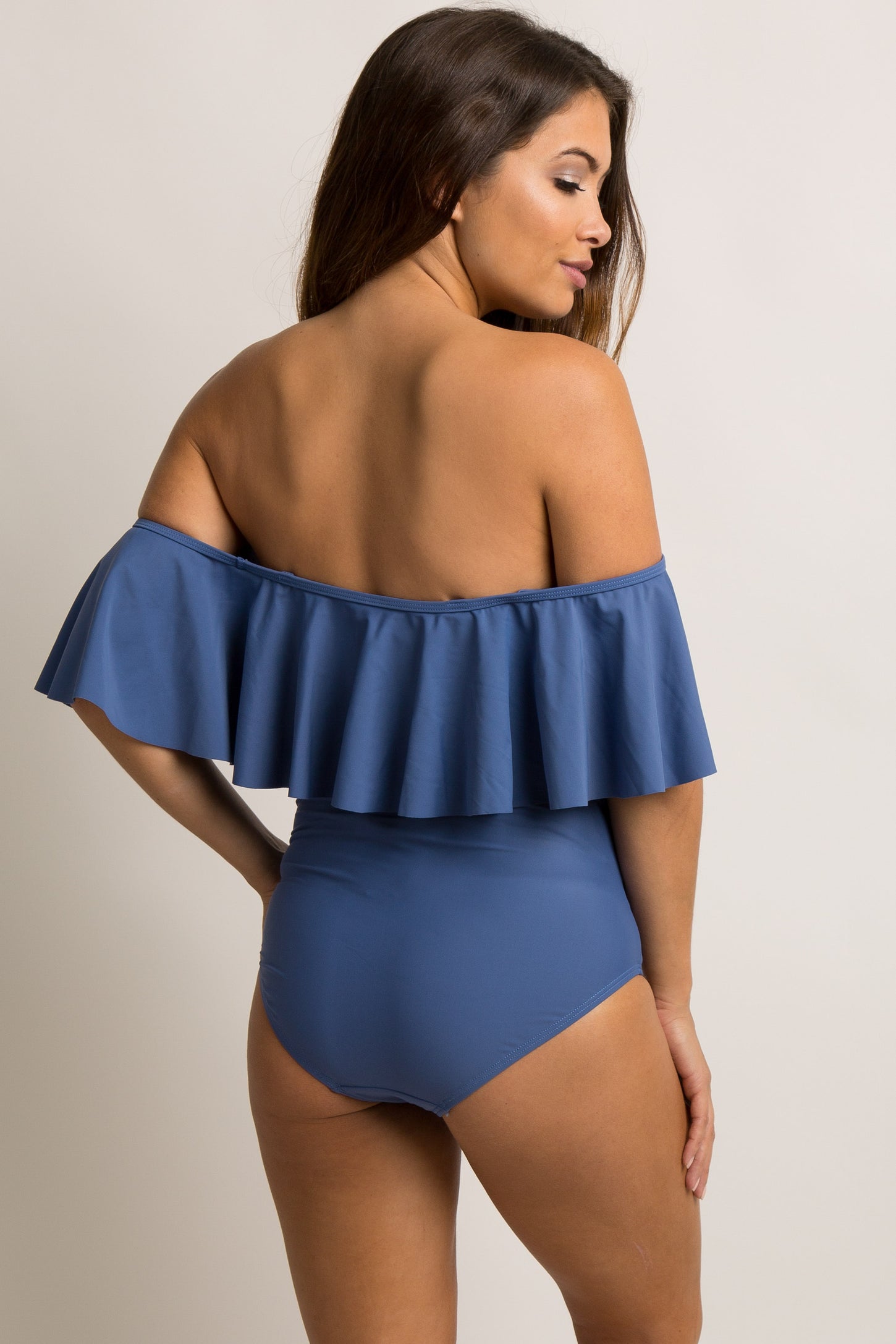Blue Grey Ruffle Trim Ruched One-Piece Maternity Swimsuit