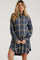 Blue Plaid Button Down Raw Hem Maternity Dress