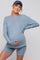 Blue Ribbed Long Sleeve Maternity Shorts Set