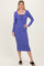 Blue Ribbed Long Sleeve Squareneck Fitted Midi Dress