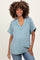 Blue Ribbed Raw Hem Maternity Short Sleeve Top