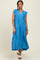Blue Ruffle Sleeve Tiered Midi Dress