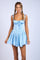 Blue Satin Corset Shape Lace Trim Flare Mini Dress