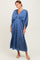 Blue Satin Pleated V-Neck Maxi Dress