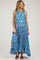 Blue Sleeveless V-Neck Ruffle Neck Tiered Maternity Maxi Dress