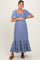Blue Smocked Cotton Flutter Sleeve Maternity Maxi Dress