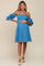 Blue Smocked Off Shoulder Long Sleeve Maternity Dress