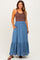 Blue Smocked Waist Button Accent Maternity Maxi Skirt