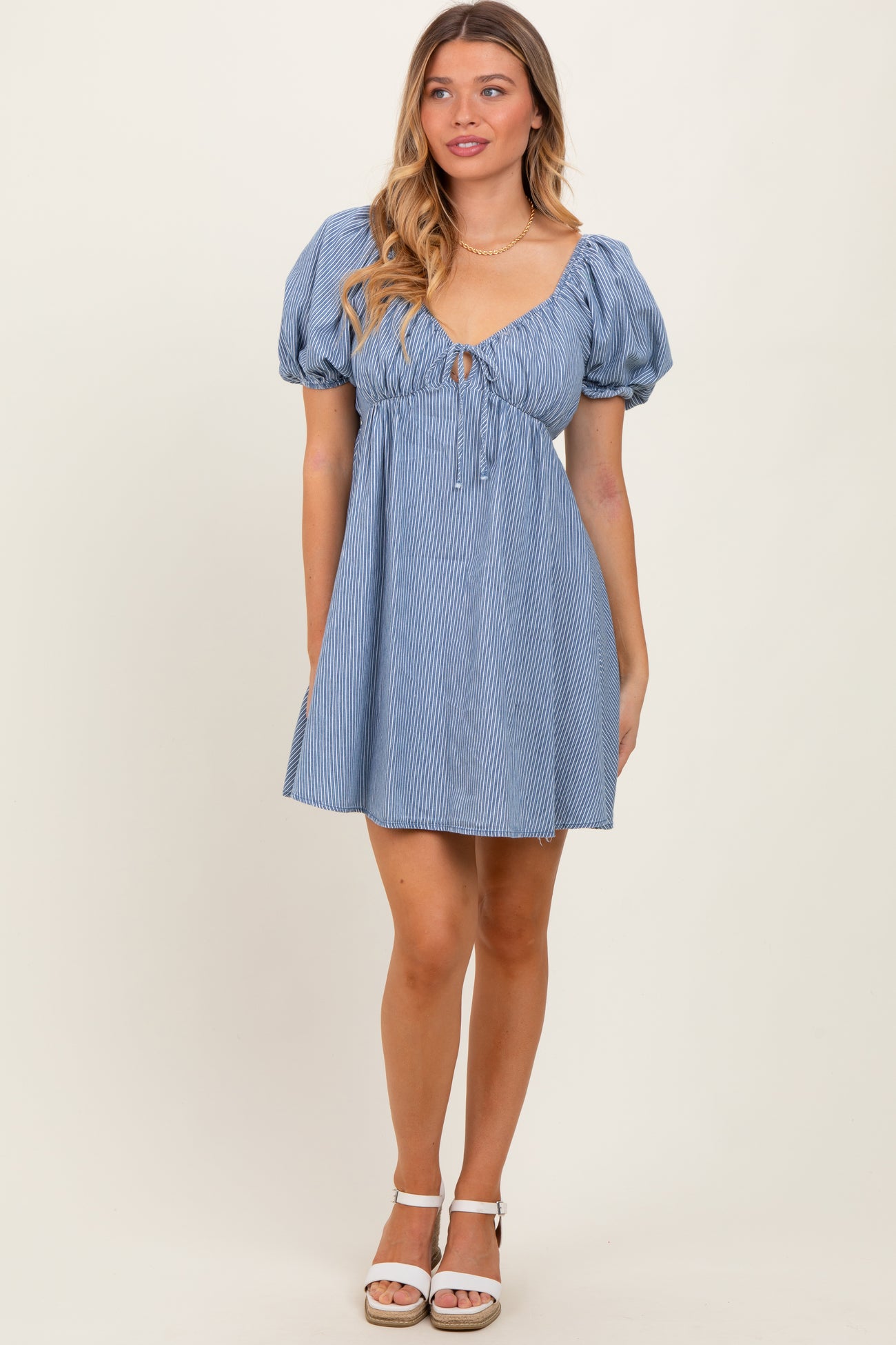 Blue Striped Chambray Front Tie Maternity Mini Dress