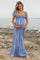 Blue Striped Off Shoulder Front Tie Maternity Maxi Dress
