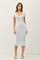 Blue Striped Square Neck Short Sleeve Midi Dress