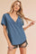 A solid hued top featuring short cuff sleeves, a wrap v-neckline and a raw hem.