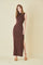 Brown Asymmetrical Neck Side Slit Maxi Dress