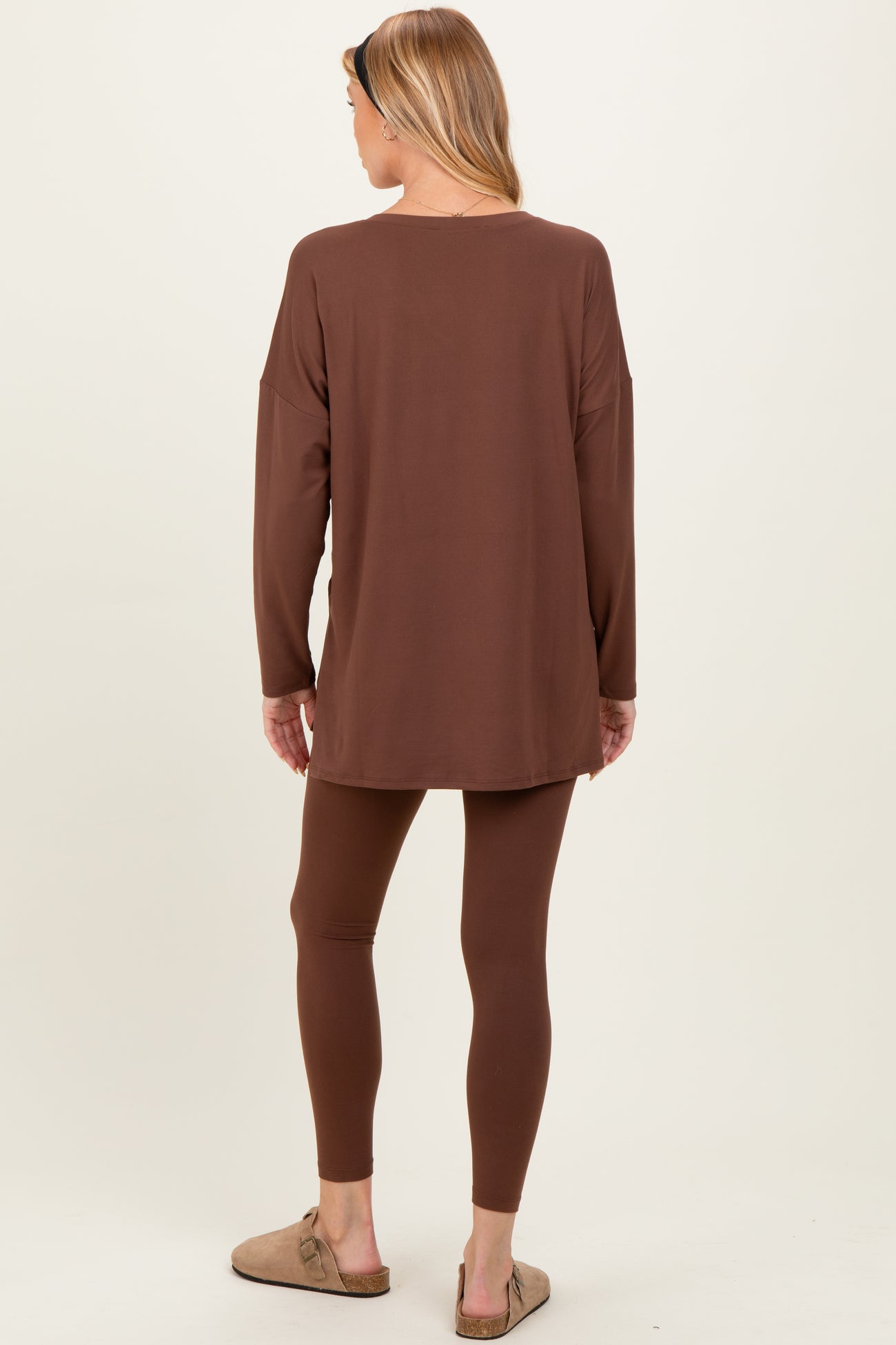 Brown Brushed Knit Maternity Oversized Top and Legging Set
