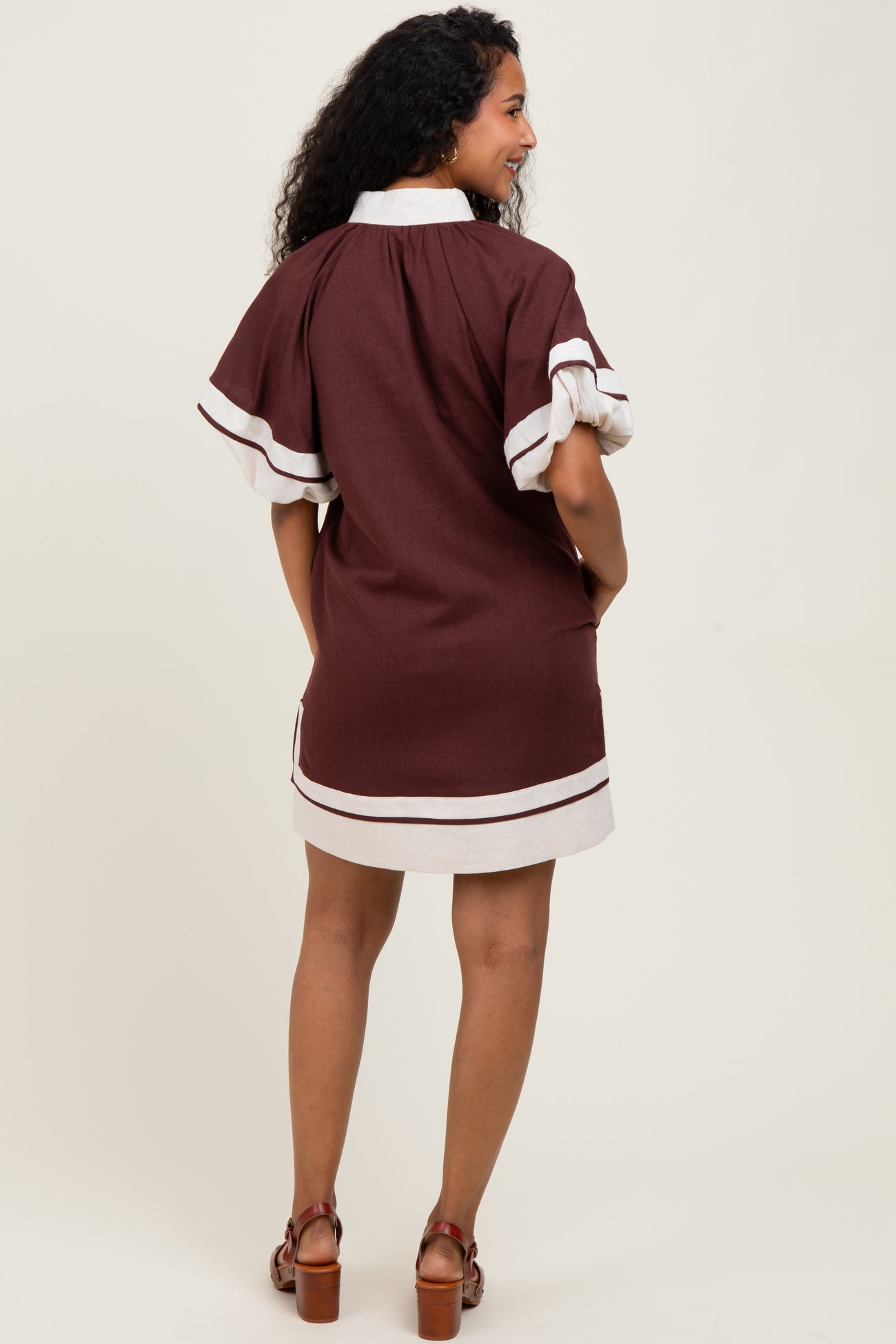 Brown Colorblock Border Print Maternity Mini Shift Dress