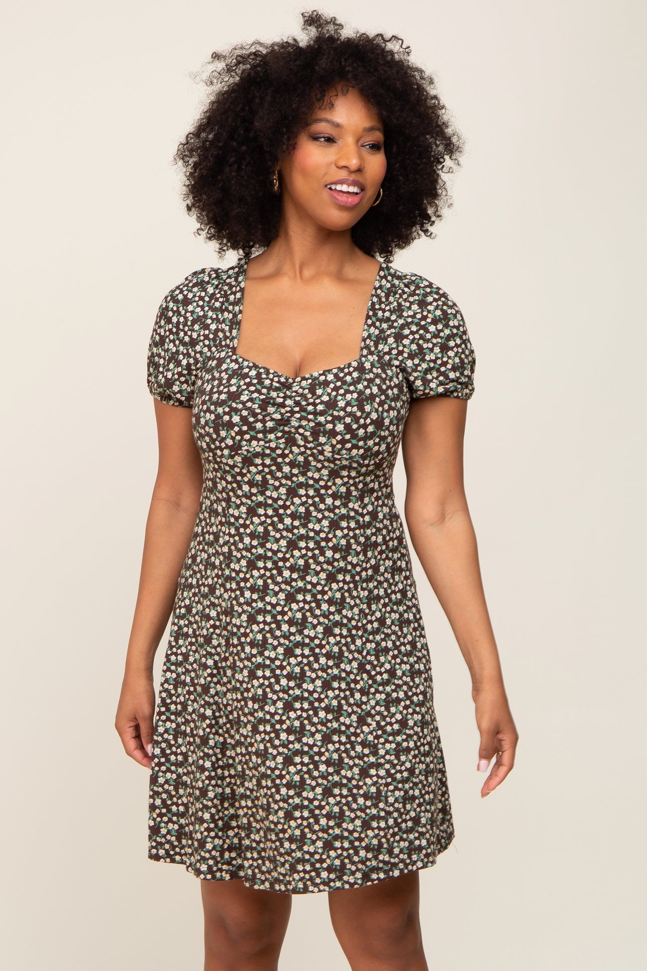 Brown Floral Criss Cross Back A-Line Maternity Dress