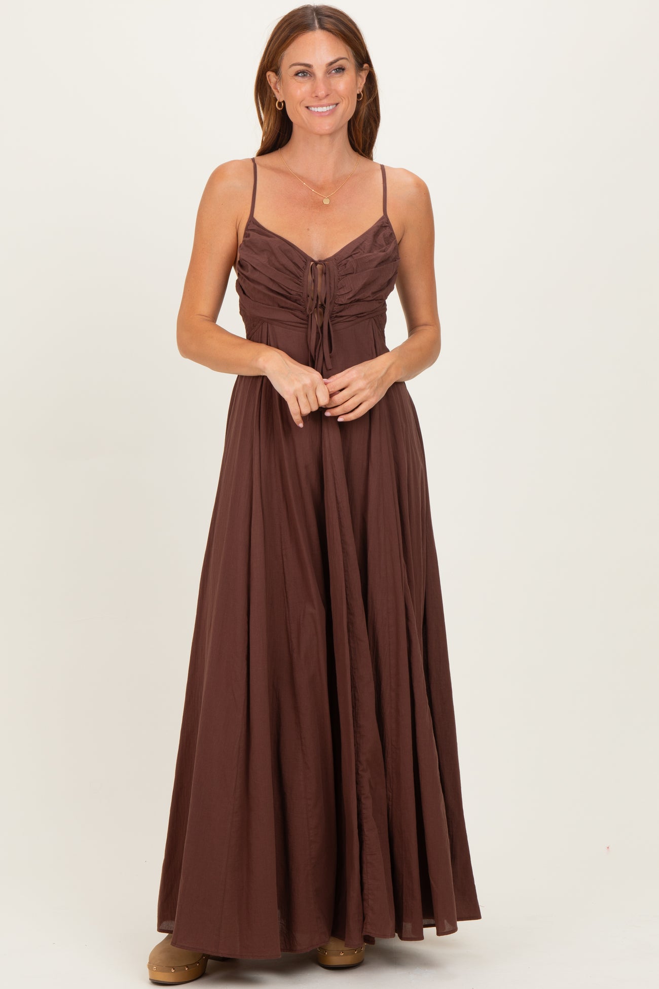 Elevate your maternity wardrobe with this Burgundy Gathered Tie Front Maternity Maxi Dress. Featuring a flattering gathered bust with adjustable tie-front detail, this dress beautifully accommodates your growing bump while providing a comfortable fit. The lightweight, flowy fabric drapes elegantly to the floor, perfect for both casual outings and special occasions. Thin adjustable straps offer added comfort and versatility, while the rich burgundy hue adds a touch of warmth and sophistication. Stay stylish and confident throughout your pregnancy with this timeless maxi dress designed to move with you. Perfect for maternity photos, baby showers, or everyday wear!