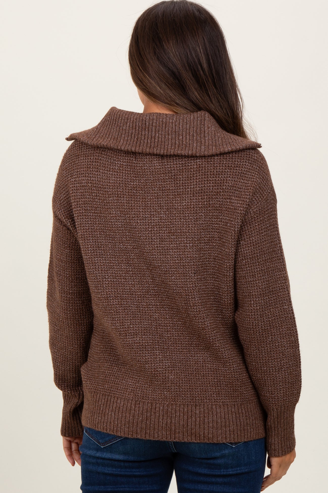Brown Half Zip Maternity Pullover Sweater