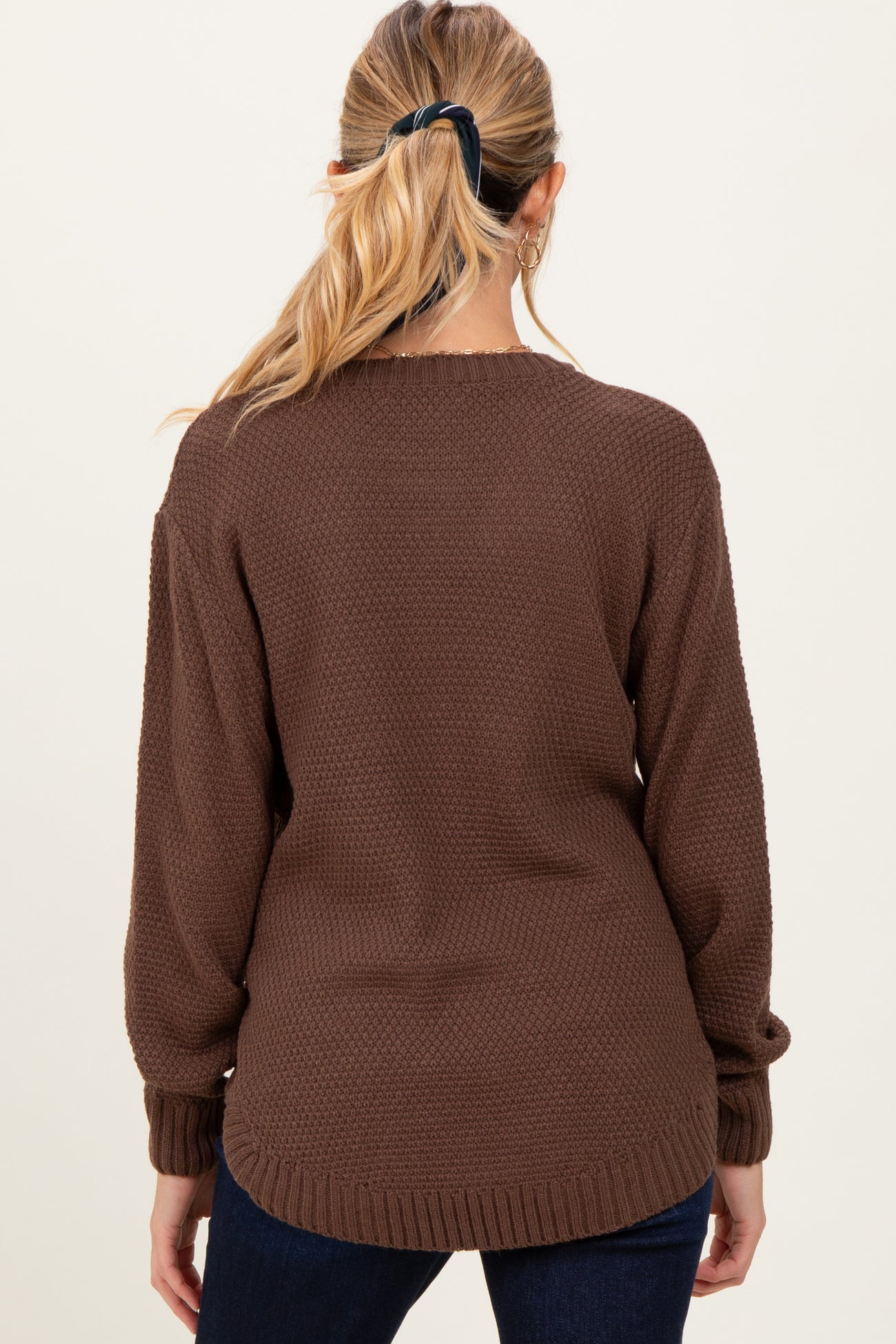 Brown Knit Pullover Maternity Sweater