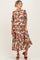 Embrace comfort and style with our Brown Leaf Print Tiered Maternity Midi Dress. Crafted with soft, breathable fabric, this dress features a beautiful brown leaf pattern on a crisp white background, perfect for any season. The tiered design provides extra room for your growing bump while creating a flattering silhouette. With a modest round neckline and button-front detailing, it offers both elegance and ease of wear. The elbow-length puff sleeves add a trendy touch, making this dress ideal for casual outings or special occasions. Pair with sandals or heels for a chic maternity look.
