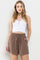 Details A pair of linen shorts with an elastic waistband, a drawstring tie with metal tip accents, and side pockets. Content + Care