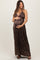 Brown Metallic Deep V-Neck Cutout Tie Back Maternity Maxi Dress