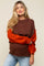 A multi-color knit maternity sweater featuring long sleeves and a rounded neckline.