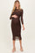 Brown Printed Mesh Long Sleeve Maternity Midi Dress