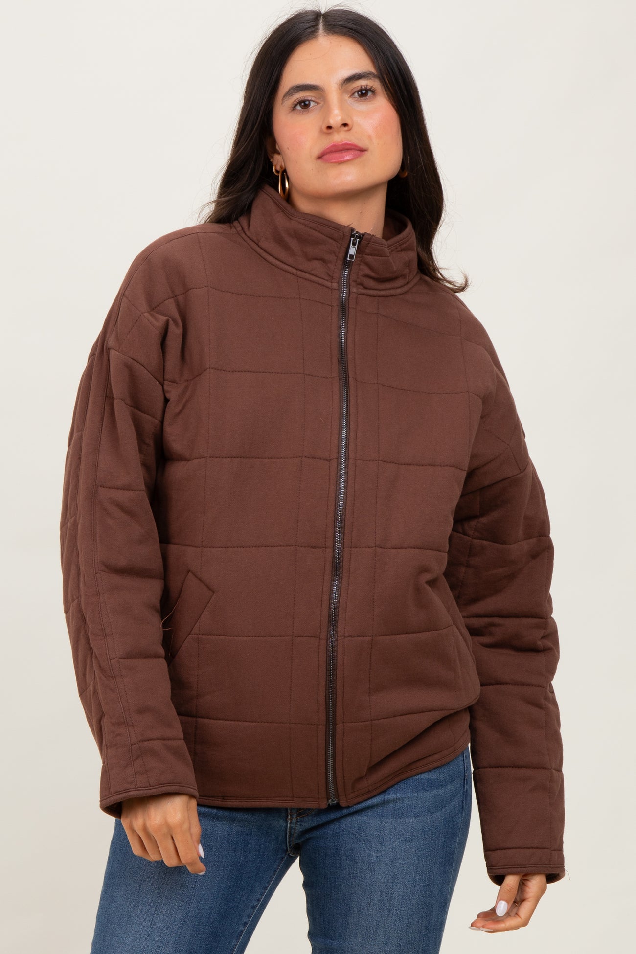 Brown Quilted Oversized Jacket